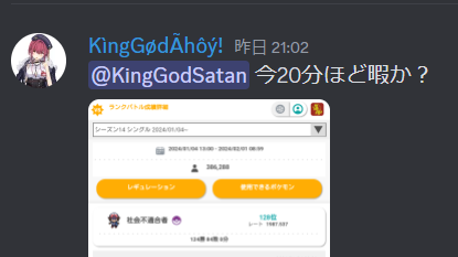 そしてレート2000チャレの時リアルが多忙なのを知ってはいたが、雑にこの男も呼んでみた。